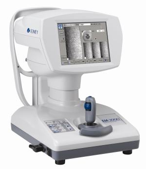 ●Tomey社製 角膜内皮細胞計測装置 EM-3000 角膜の透明性を維持する角膜内皮細胞数を計測する装置です。
