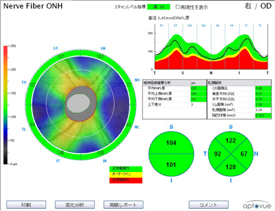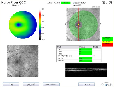 網膜の神経線維層(NFL)の欠損を測定し、緑内障の早期発見が可能です