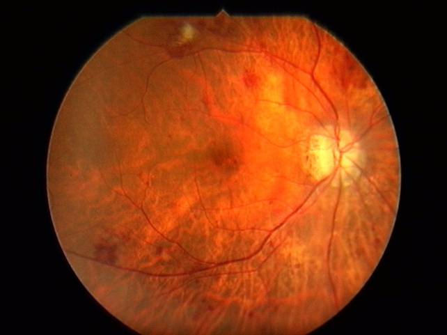 増殖網膜症の75%で併発し、網膜の黄斑部に血管から染み出た血液の液体成分がたまってむくみを起こします